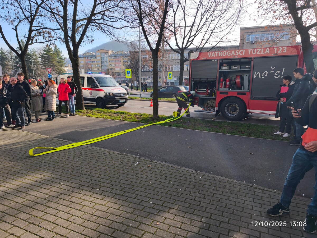 Danas, 10.12.2025. godine, uspješno je realizovana vježba evakuacije i spašavanja pod nazivom „Odgovor na požar 2025“ u Javnoj ustanovi Mješovitoj srednjoj elektrotehničkoj školi Tuzla.